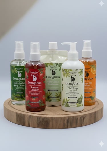 OrangUtan Orange Cleaner All Purpose Cleaner— a versatile plant-based cleaning solution designed for every corner of your home. Its gentle yet powerful formula removes dirt, grease, and stains effortlessly while remaining safe for you, your family, and the environment. Enjoy a fresh, healthy clean that brings simplicity and peace of mind to your daily routine — all at a fraction of the cost.