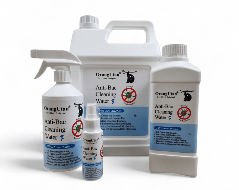 From daily grime to disease prevention, OrangUtan Anti-Bac Cleaning Water delivers a powerful 3-in-1 formula—cleaning, sanitizing, and deodorizing in one simple step. Protect yourself and your family with a natural, safe solution that tackles oil, dirt, bacteria, fungi, and viruses wherever they hide.