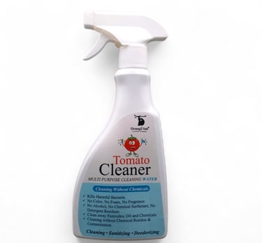 OrangUtan Tomato Cleaning MultiPurpose Cleaning Water — a safe and green cleaning solution that cleans, sanitizes, and deodorizes effectively without chemical surfactants or harsh detergents, redefining the simplicity of healthy living. Designed for everyday use throughout your home, it removes dirt, oil, and grease with ease — leaving no chemical residues that can cause irritation or contamination.