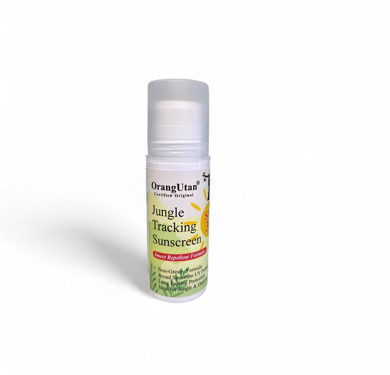 Jungle Tracking Sunscreen SPF 30 provides broad-spectrum UV protection with the added benefit of natural insect repellent power, keeping your skin safe from both sun and bugs during outdoor adventures. Its non-greasy formula offers long-lasting comfort and protection, perfect for hiking, camping, and jungle exploration.